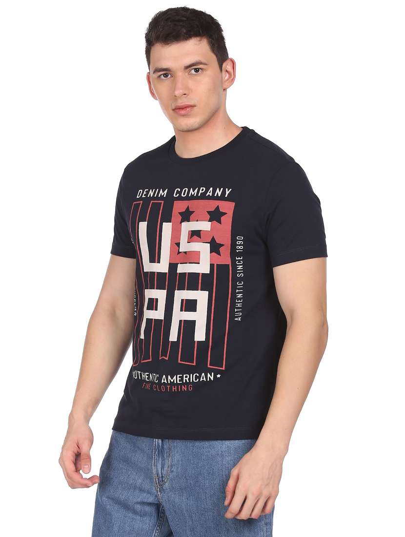navy-blue chest-printed t-shirt