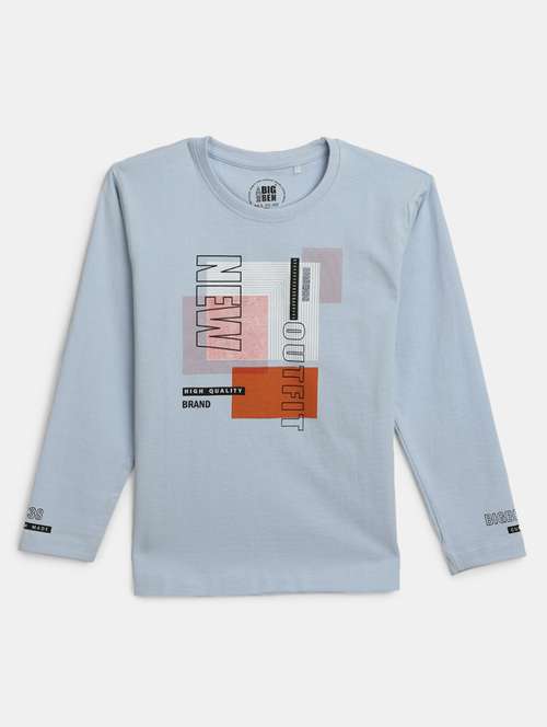 light blue printed round neck t-shirt