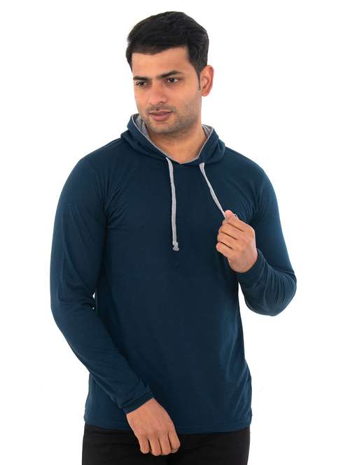 - » blue solid regular hooded t-shirt