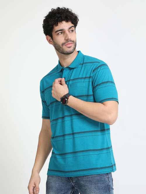 blue striped short sleeve polo t-shirt