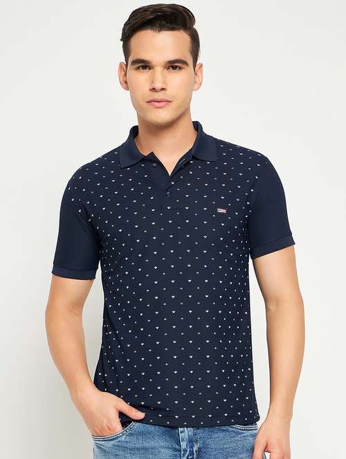 blue printed polo neck t-shirt