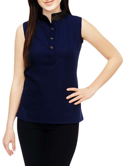 navy blue crepe regular top - 13069999 - Very Small Image - 1