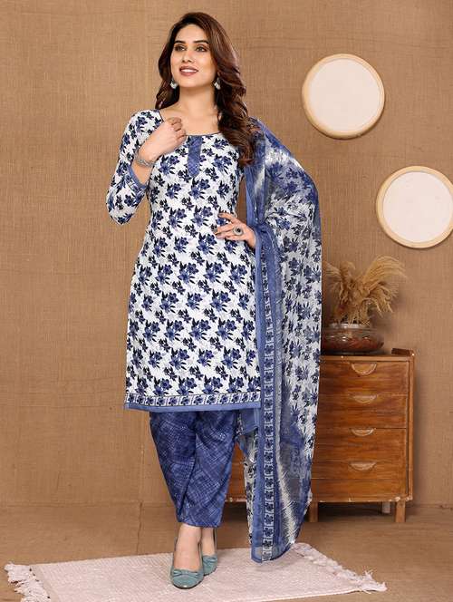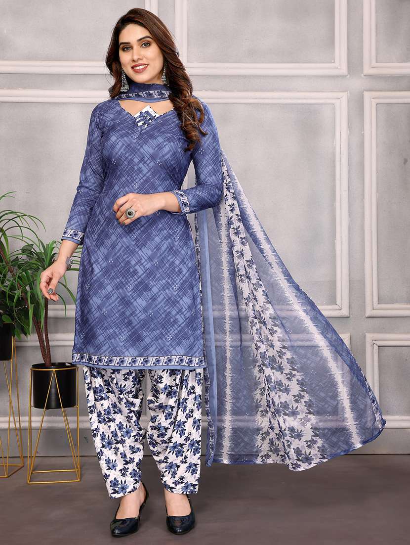 - Look ultra gorgeous in unstitched suits from Anand Sarees and grab these beautiful suits in blue colour.