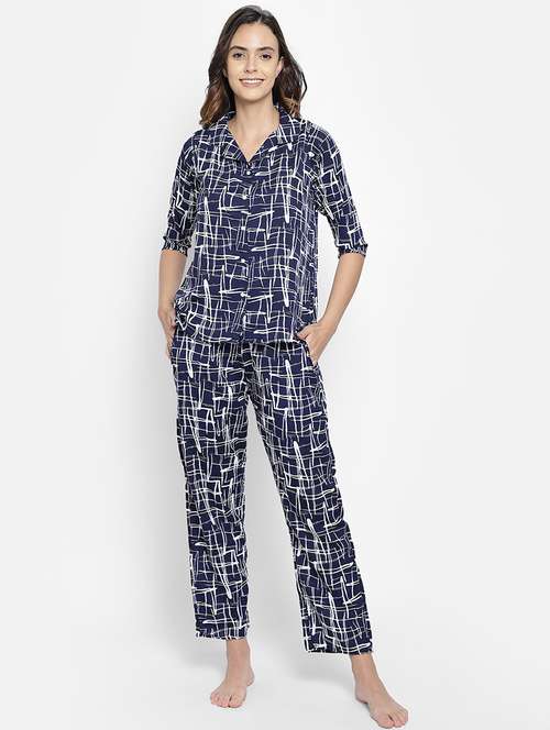 shirt collar printed nightwear pajama set - 18038132 - Very Small Image - 1