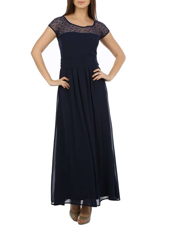 - » solid navy blue crepe maxi dress