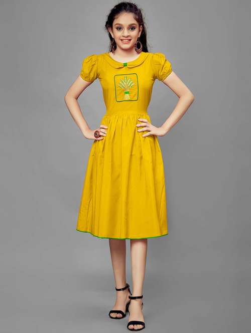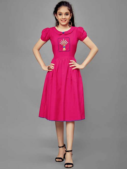 - Dress up your little ones in frocks featuring pretty patterns in crepe .