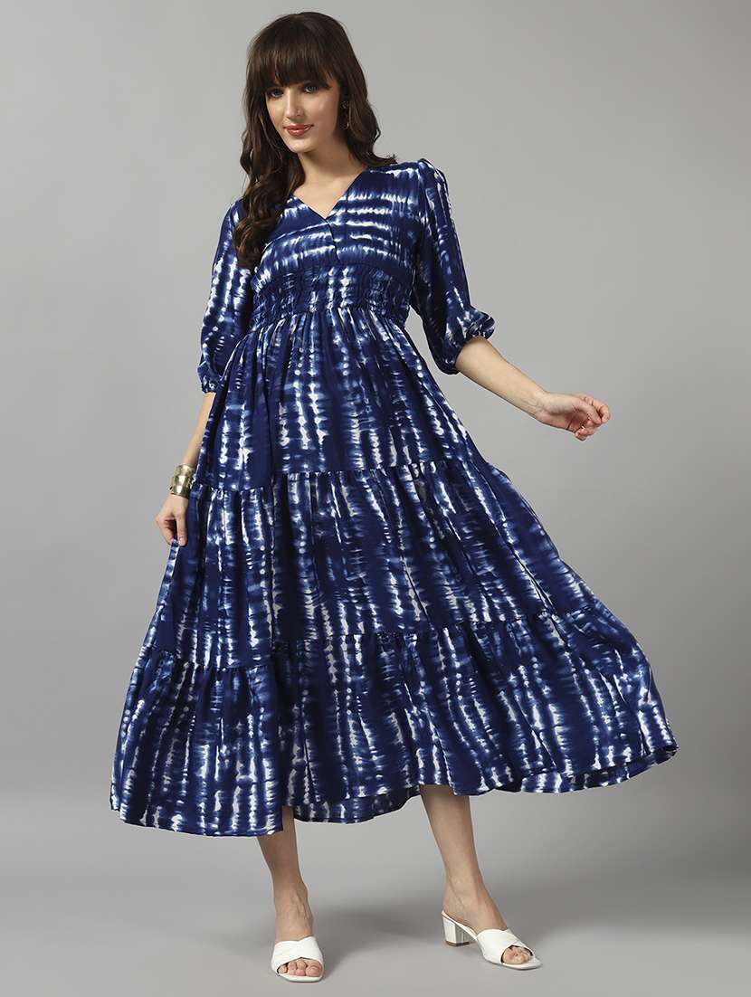 - » women tie & dye printed puff sleeve tiered dress