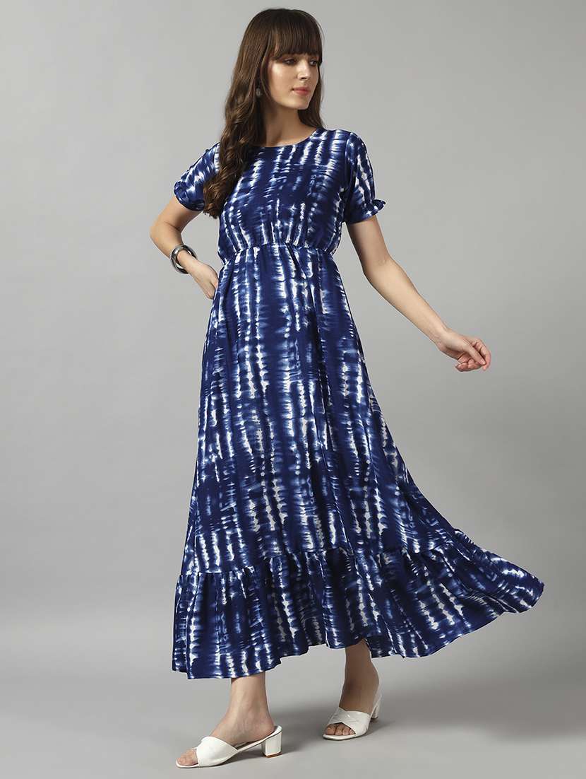 - » women tie & dye printed puff sleeve tiered dress