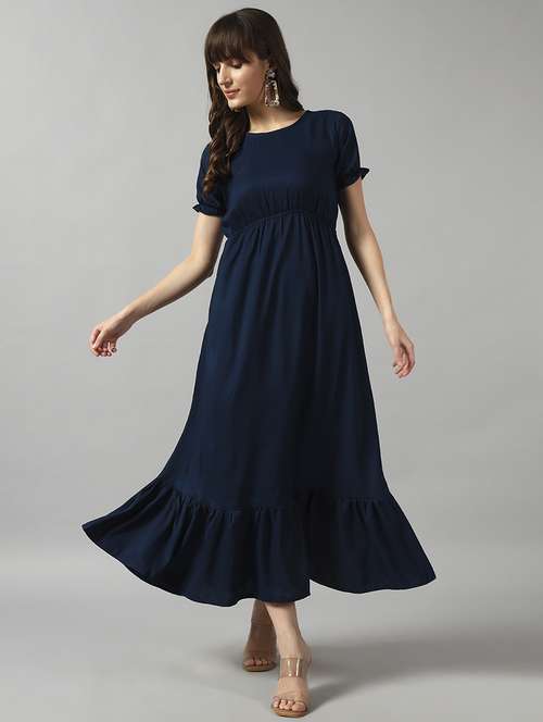 - Looking for some awesome collection of dresses? Well, lay your hands on this dress from Jash Creation and also get the option of choosing from navy blue colour.
