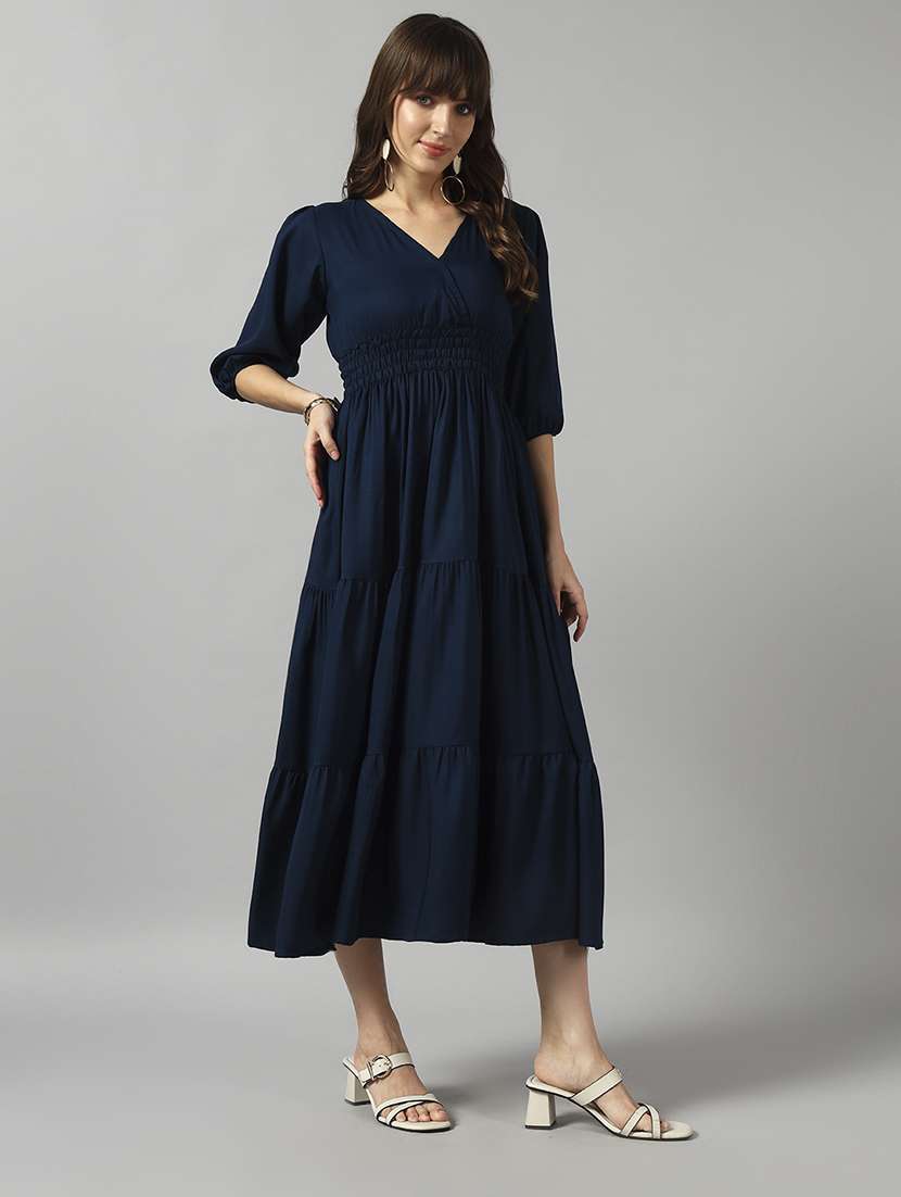- » women solid puff sleeve tiered dress