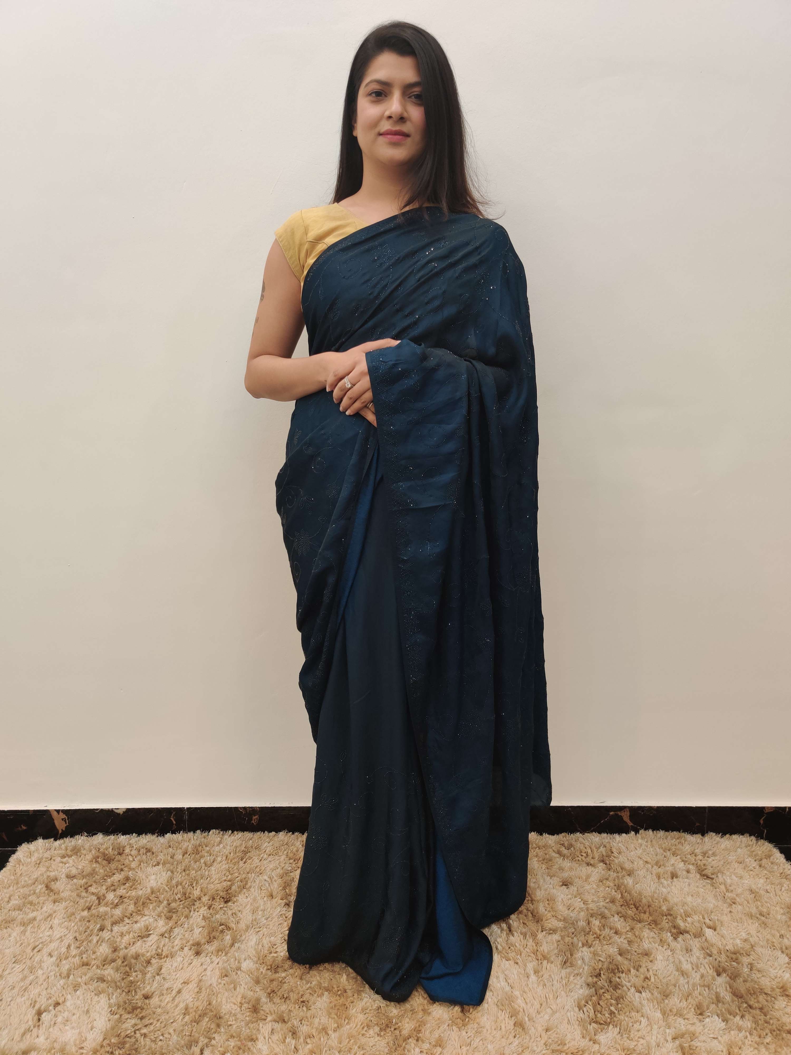 blue crepe silk saree