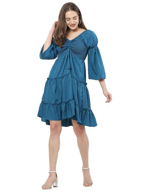 - » solid blue tiered detailed dress