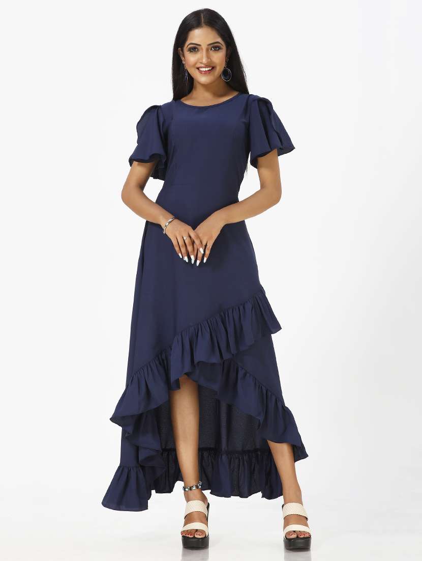 - Looking for some awesome collection of dresses? Well, lay your hands on this dress from Mrutbaa and also get the option of choosing from blue colour.