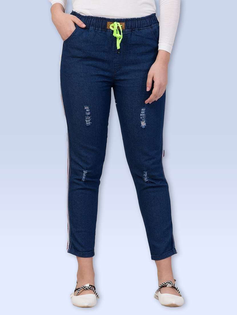 women tapered distressed mid rise slim fit jean