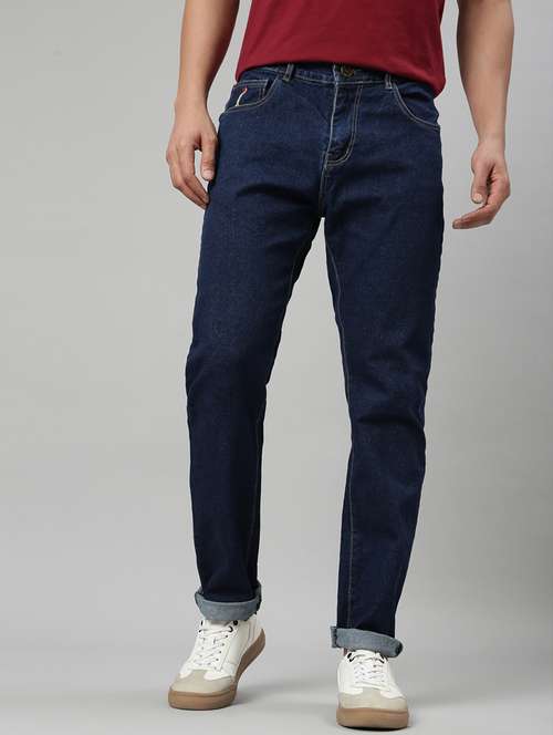 - » men plain mid rise full length tapered jeans