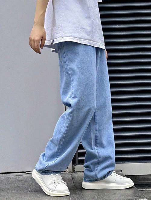 men plain mid rise full length jeans
