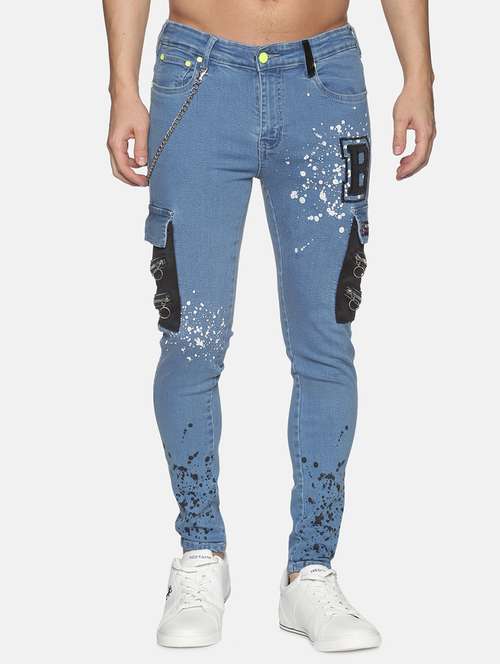 mens skinny fit patched jeans