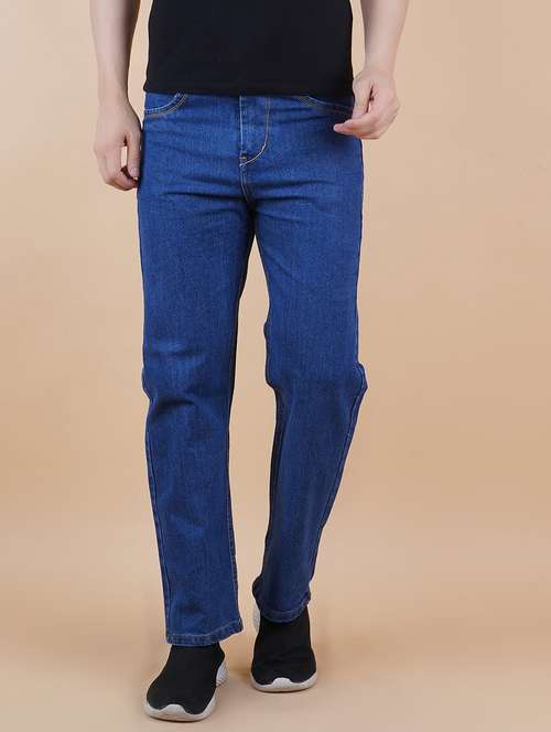 - » men blue plain mid rise straight fit jeans