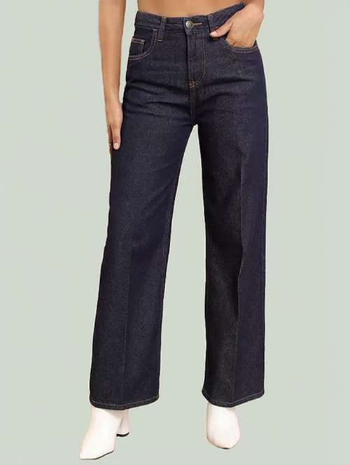 - » women solid high rise wide leg jean