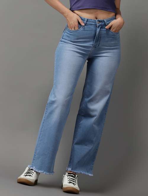- Choose from the trendy assortment of straight fit jeans in a variety of light blue colors and timeless designs to complete your clothing essential list.