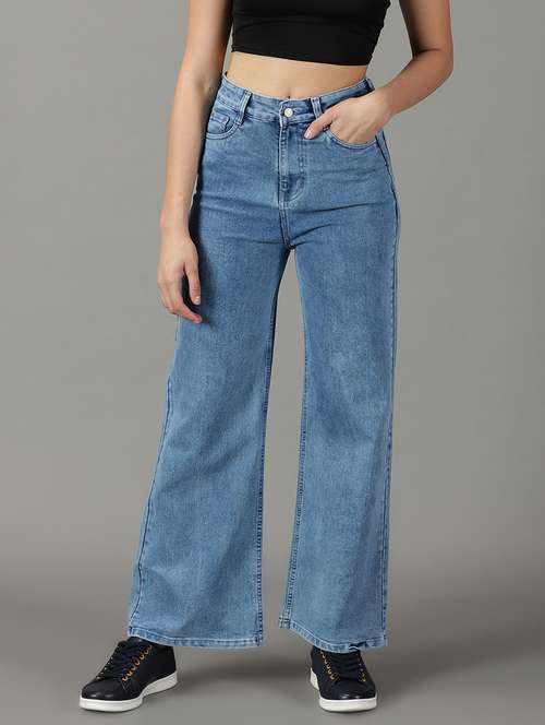 - Choose from the trendy assortment of wide leg jeans in a variety of blue colors and timeless designs to complete your clothing essential list.