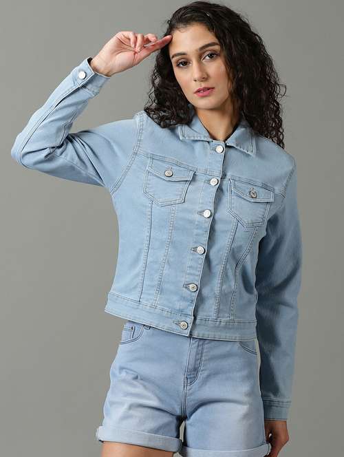 - » spread collar solid denim jacket