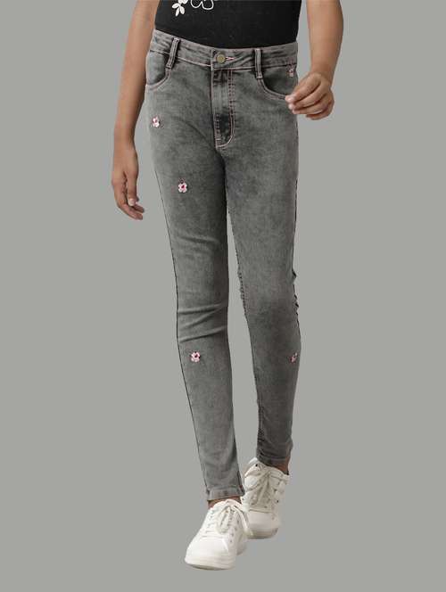 girls solid mid rise slim fit jean