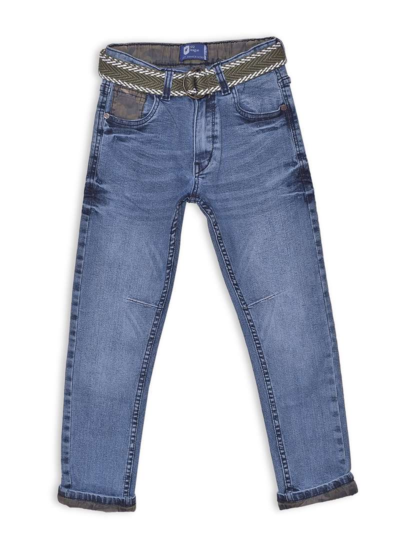 blue denim plain jeans with fabric belt