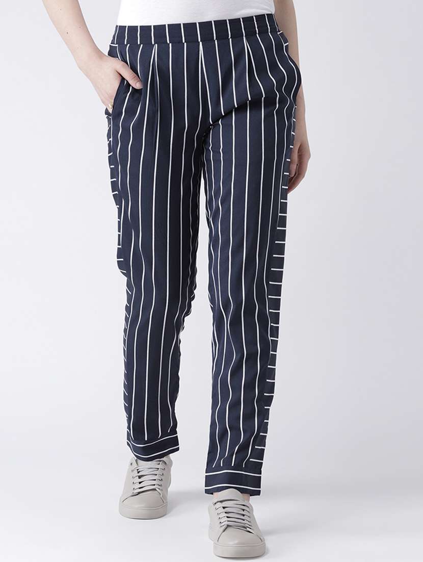 women striped pleated cigarette pants