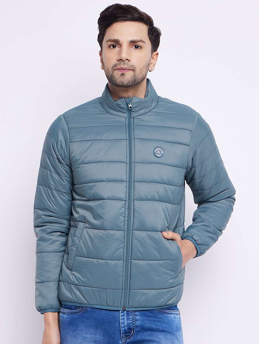 men blue solids quilted jackets