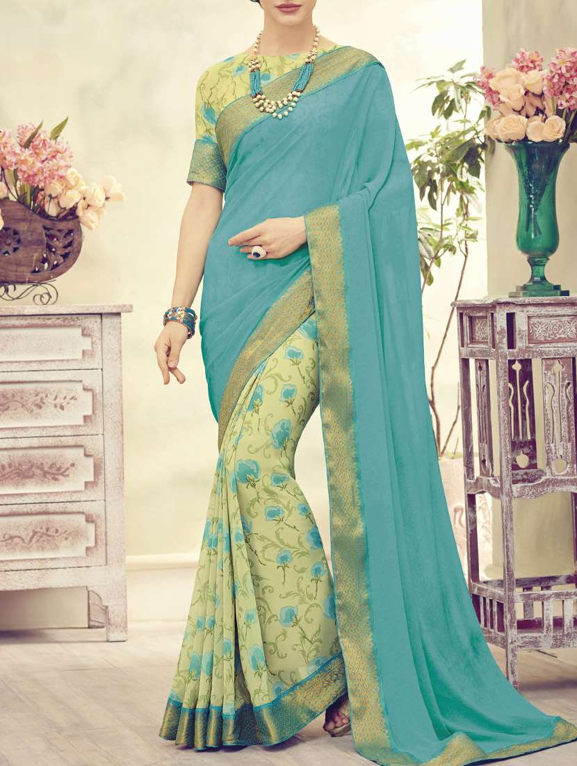 blue and green half and half saree with blouse
