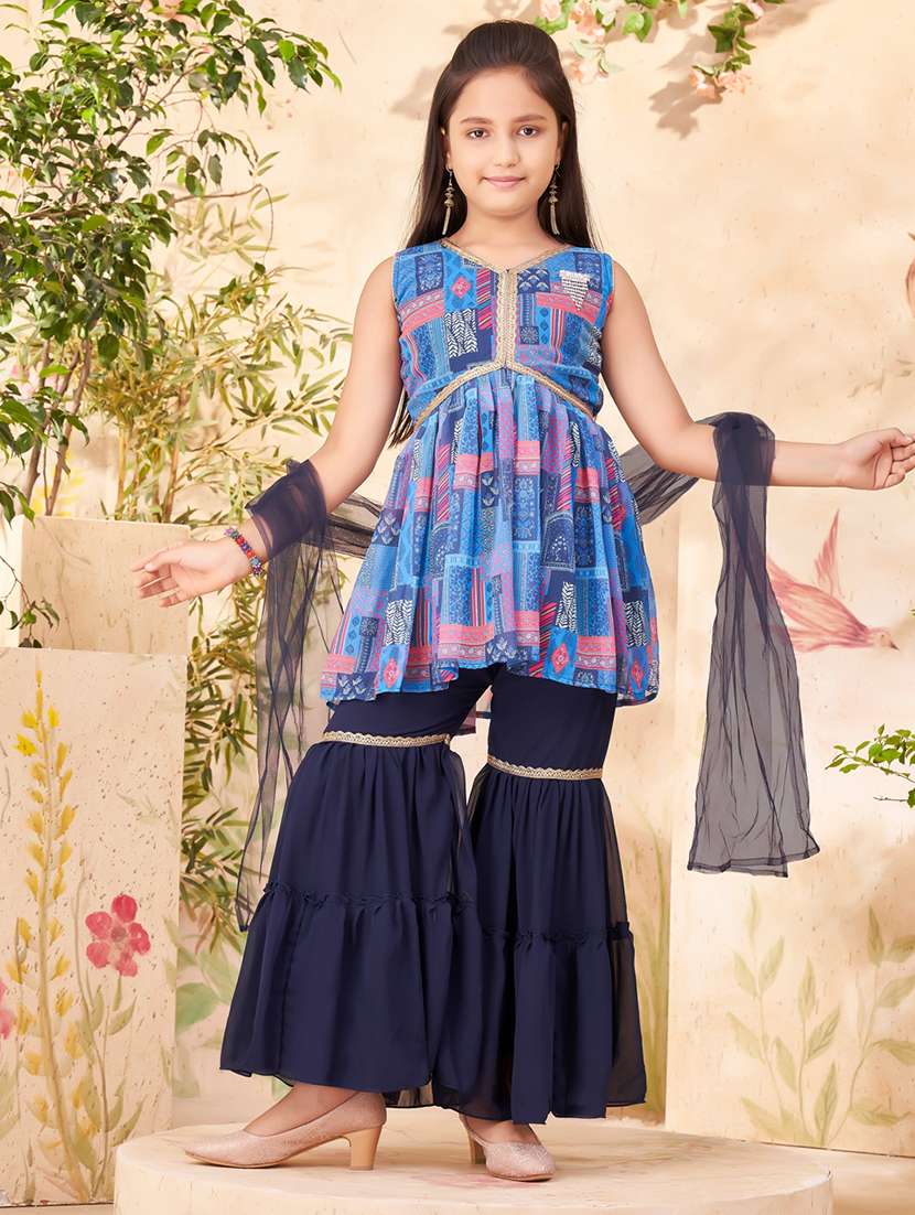 - » girls blue georgette kurta sharara suit set