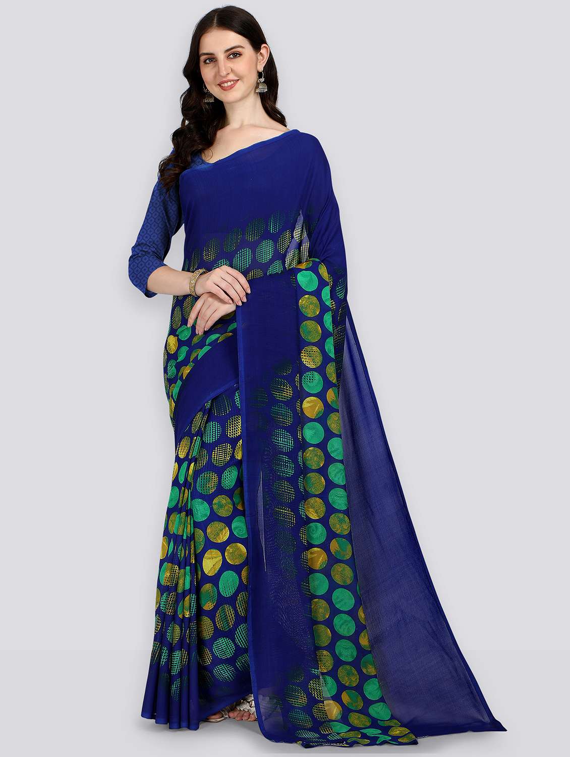 women blue printed saree with blouse - 21407953 -  Standard Image - 1 women blue printed saree with blouse - 21407953 -  Zoom Image - 1