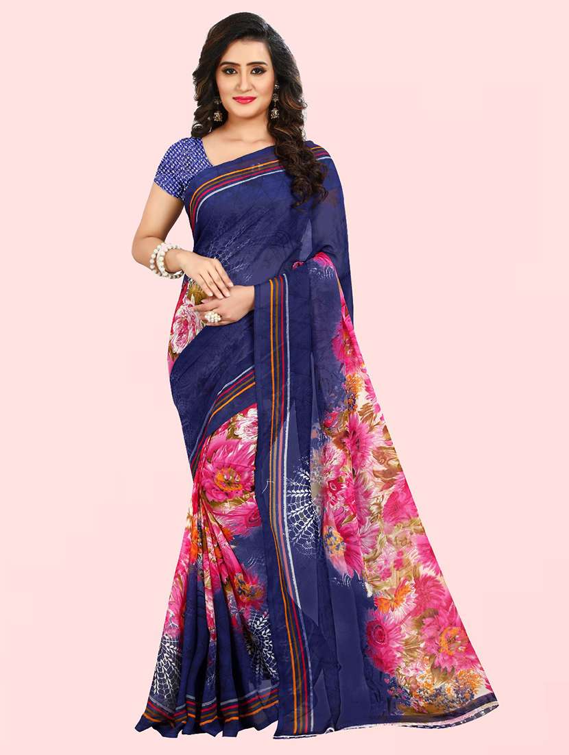 - » women blue floral printed saree with blouse