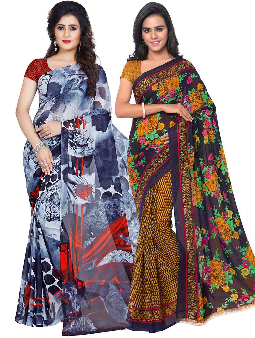 pack of 2 printed casual wear sarees with blouse