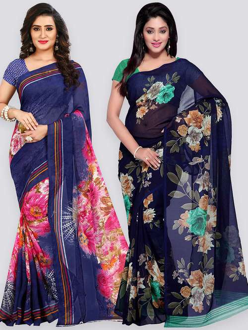 pack of 2 printed casual wear sarees with blouse - 21431432 - Very Small Image - 1