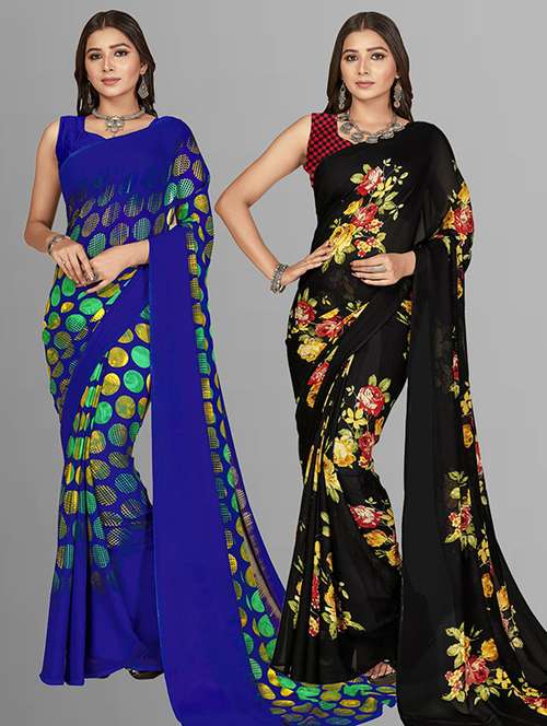 women pack of 2 casual wear sarees with blouse - 21435769 - Very Small Image - 1