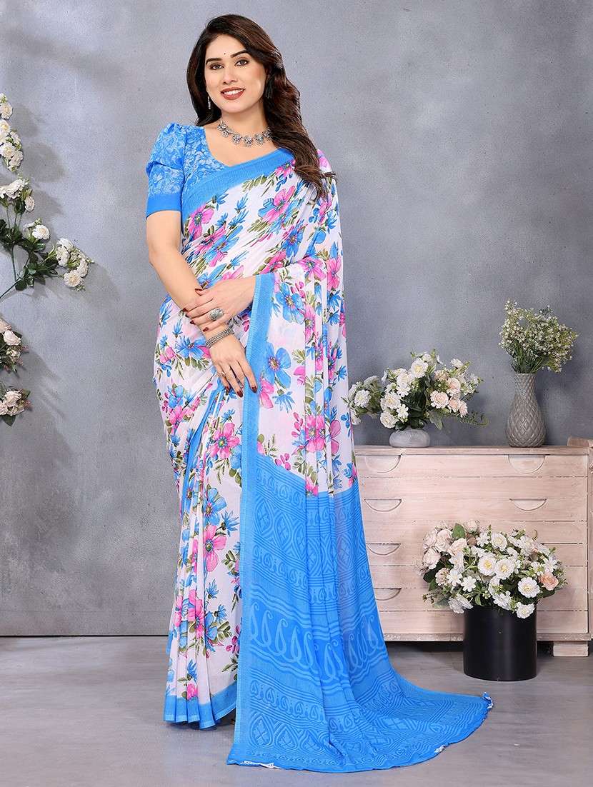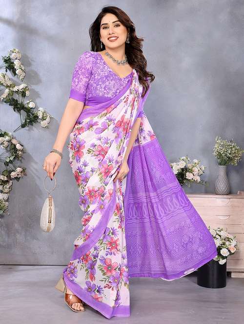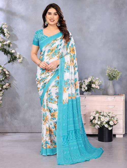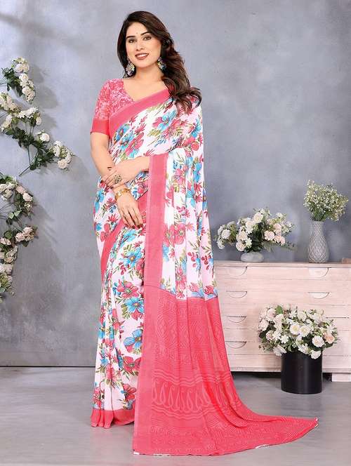 Add a touch of elegance to your wardrobe with this beautiful floral print georgette saree. Crafted from soft and lightweight georgette fabric, this saree features a charming all-over floral pattern that brings a fresh, feminine appeal. Perfect for casual outings, festive occasions, or office wear, its airy drape ensures all-day comfort. Pair it with a matching blouse and subtle accessories to complete your graceful look.