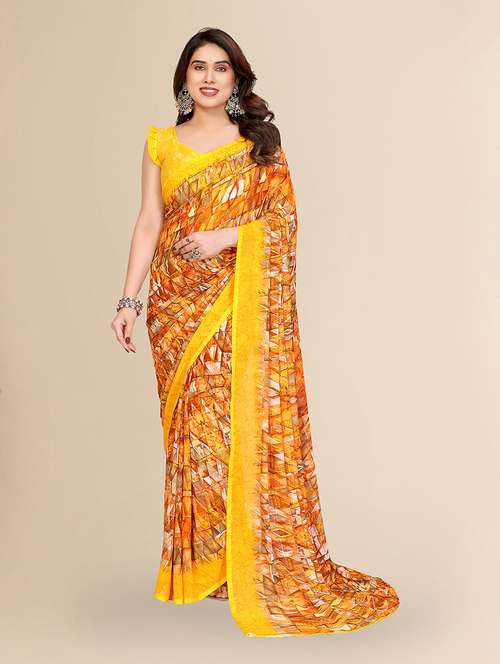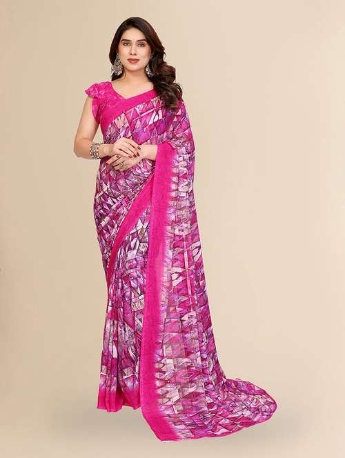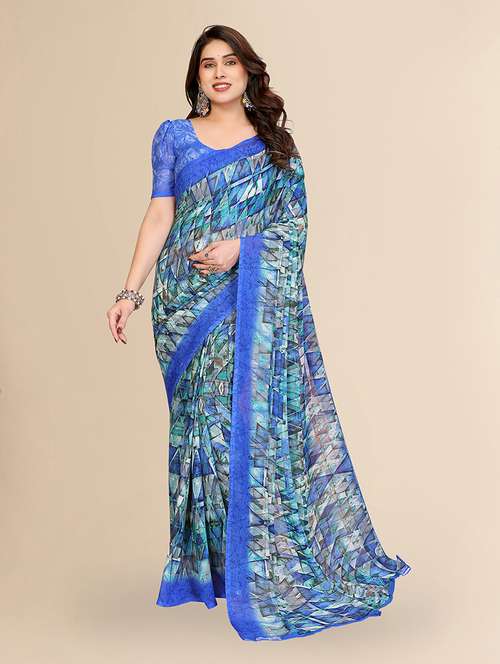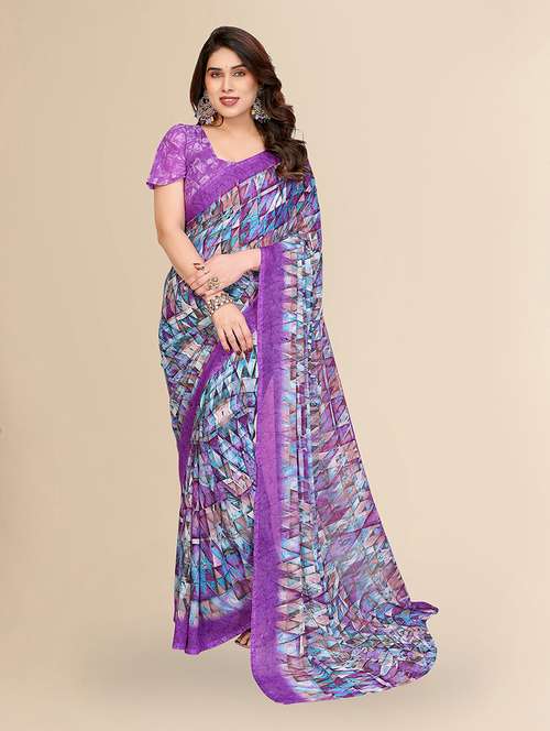 Step into modern elegance with this Contemporary Geometric Design Georgette Saree, designed to make a bold statement. Showcasing a unique mix of abstract lines, blocks, and patterns in striking colors, this saree effortlessly fuses tradition with a modern twist. The geometric motifs lend a graphic edge, making it a stylish pick for fashion-forward women.