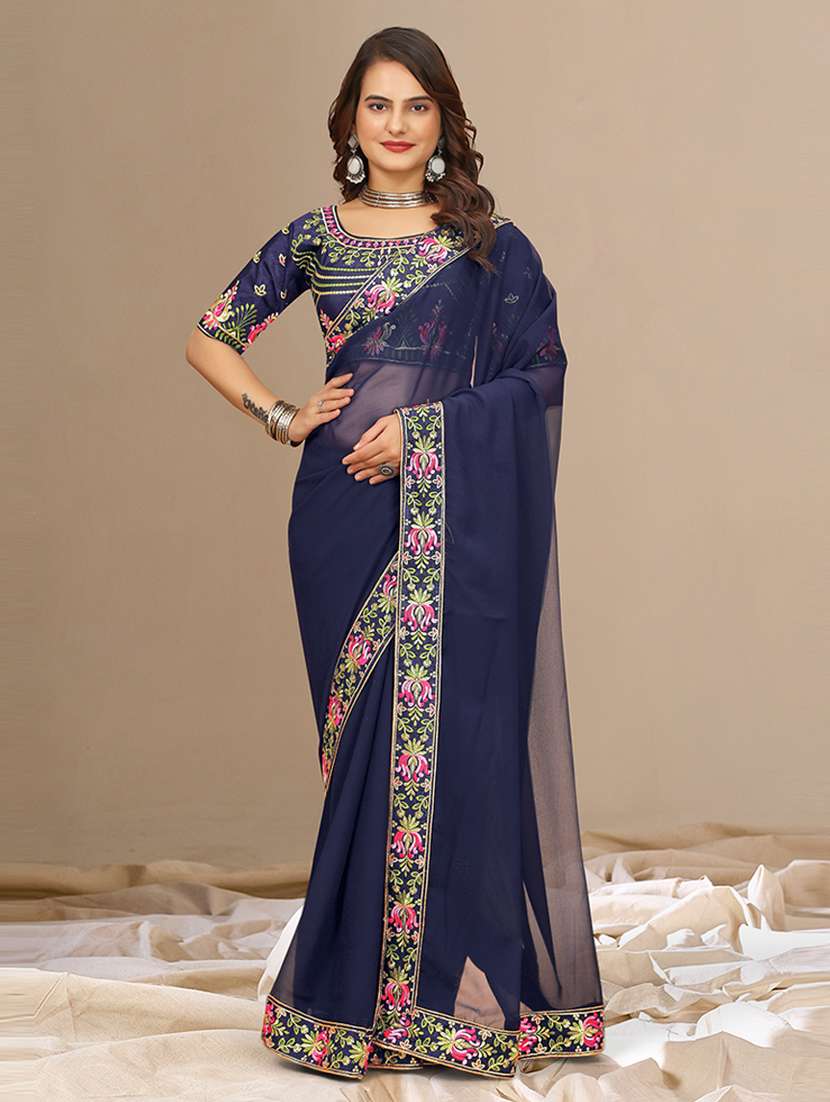 women solid with bordered saree  - 21697306 - Very Small Image - 1