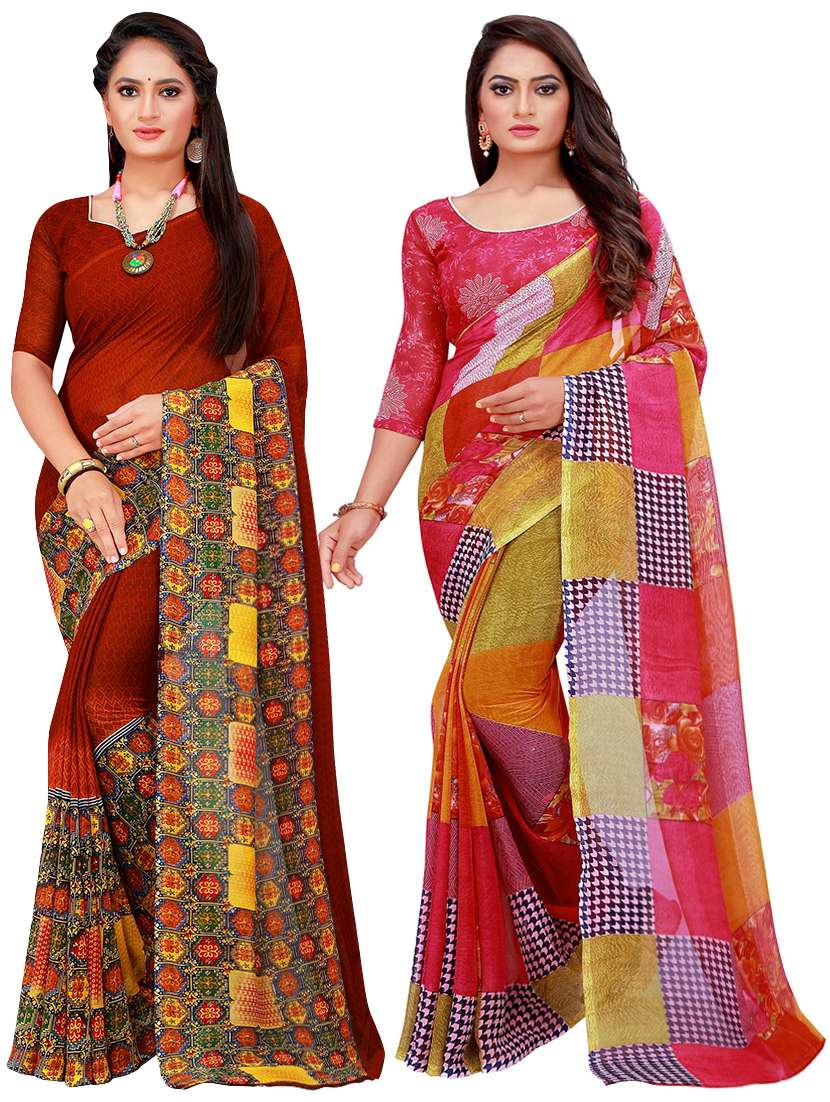 Be the cynosure of all eyes wearing this multicolored printed sarees from the house of Florence. Made of Georgette, this saree will keep you comfortable throughout the day. The fine Work enhances the visual appeal of this saree. each saree measures 5.2 m and it comes with a 0.80 m blouse piece.