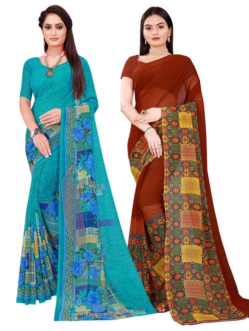 Be the cynosure of all eyes wearing this multi colored printed sarees from the house of Florence. Made of Georgette, this saree will keep you comfortable throughout the day. The fine Work enhances the visual appeal of this saree. each saree measures 5.5 m and it comes with a 0.80 m blouse piece.