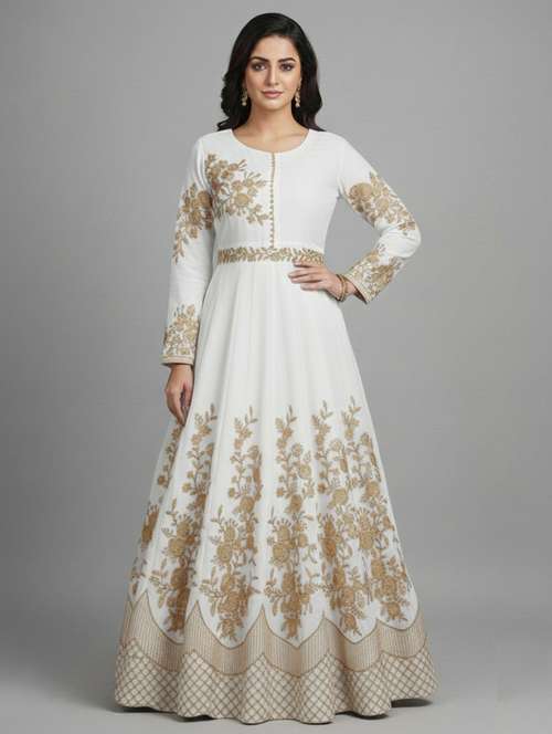 - These beautiful designer gowns are prettified with attractive designs which make it appear more ethnic.
