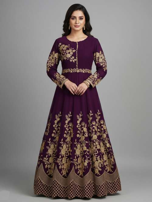 - These attractive gowns come in fit & flare made of georgette fabrics that can surely garner you lots of compliments when you wear it.