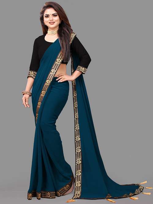 - » women's bordered royal blue colored saree with blouse