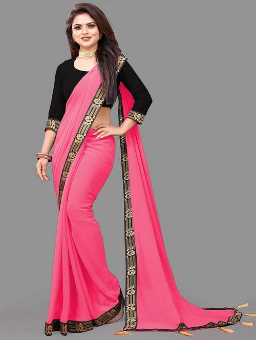 lace bordered solid saree