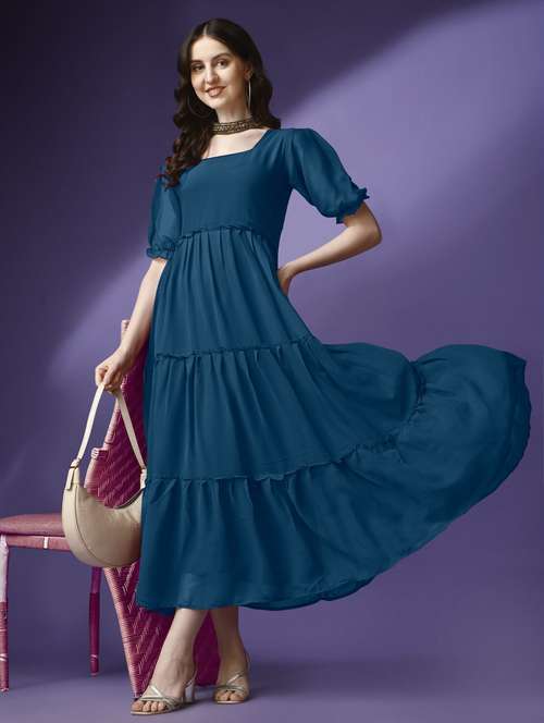 - Looking for some awesome collection of dresses? Well, lay your hands on this dress from Jash Creation and also get the option of choosing from teal colour.