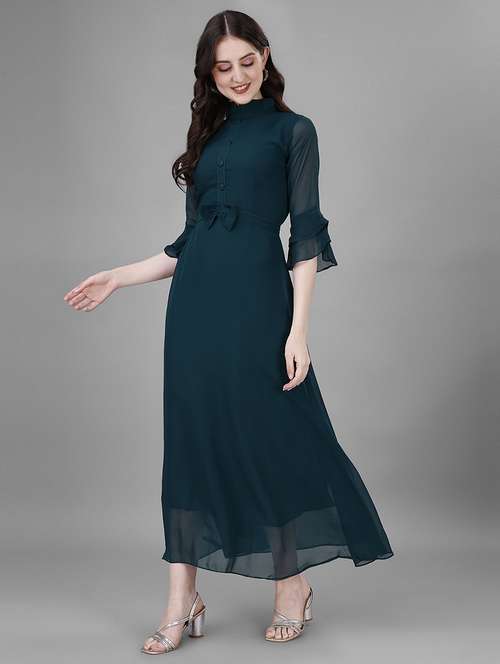 - » women solid mandarin neck fit & flare maxi dress