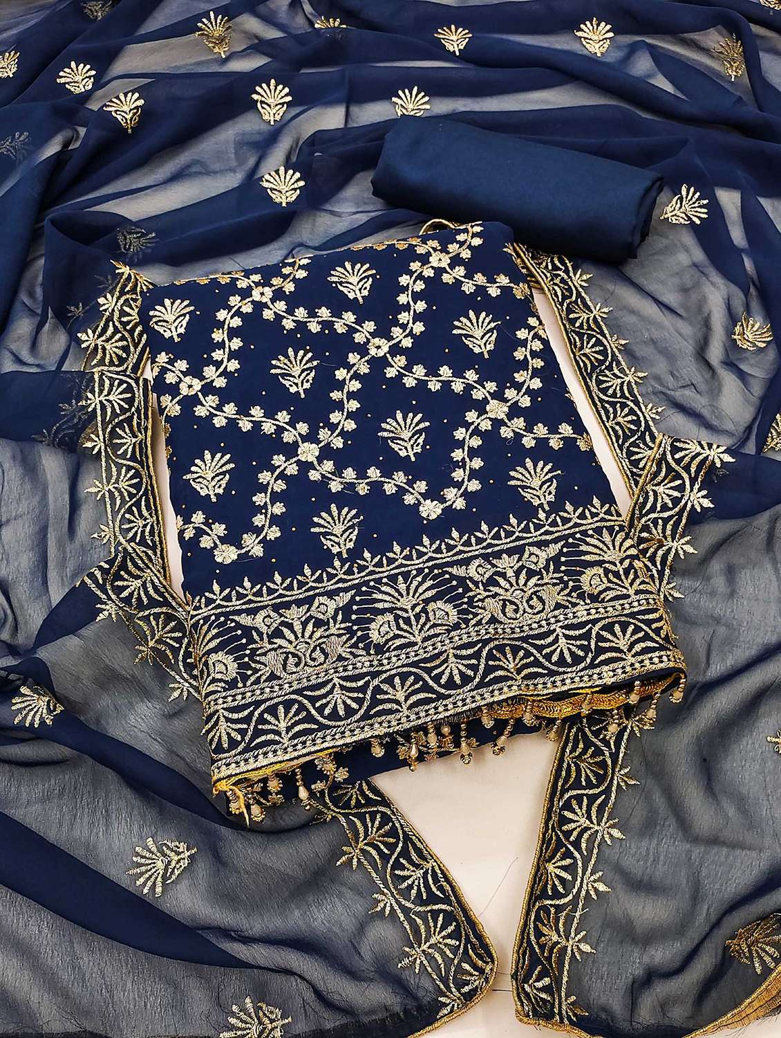 women solid with work embroidered unstitched suit set - 21992563 - Very Small Image - 1