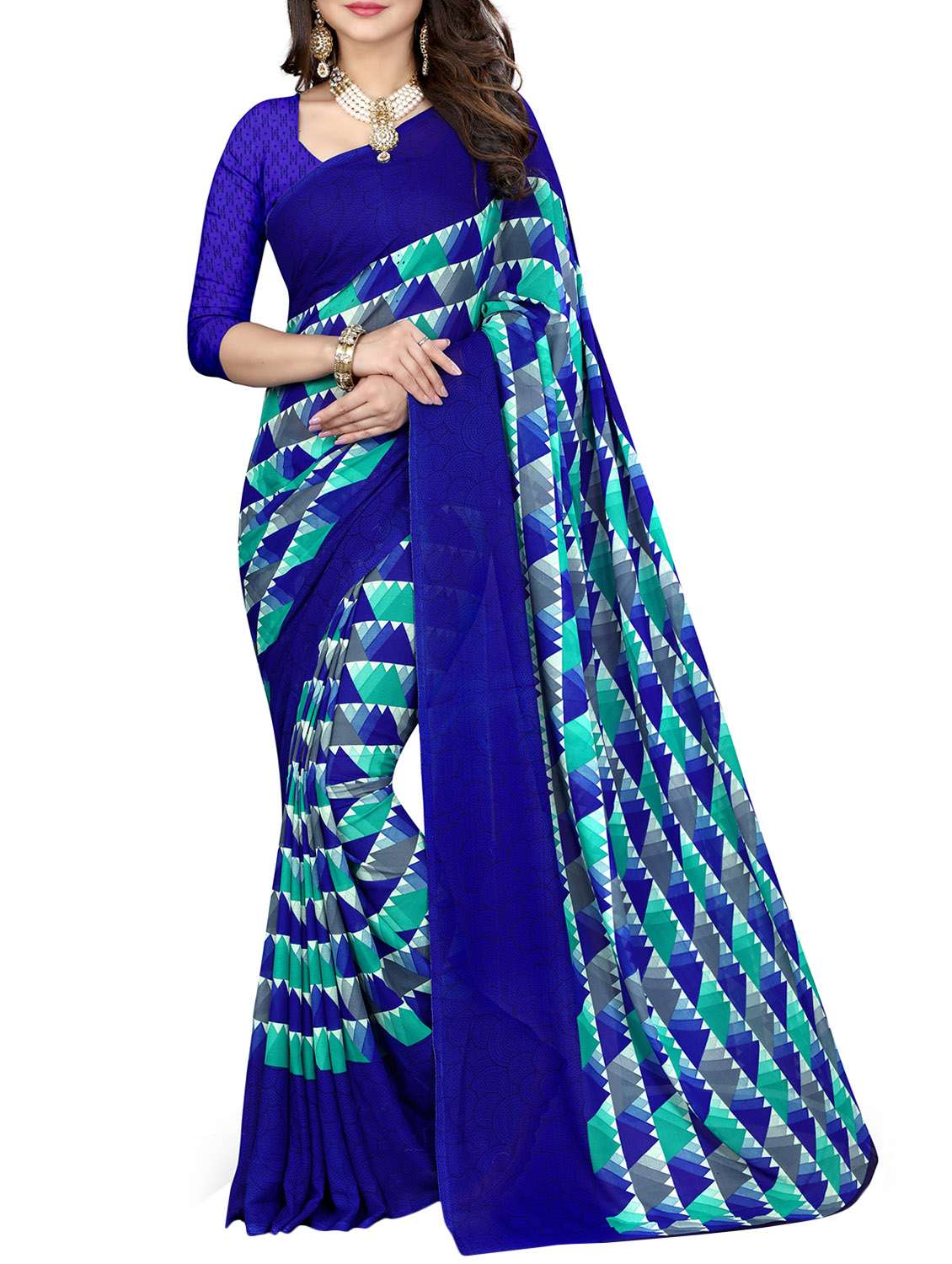 - » contrast geometrical printed georgette saree with blouse